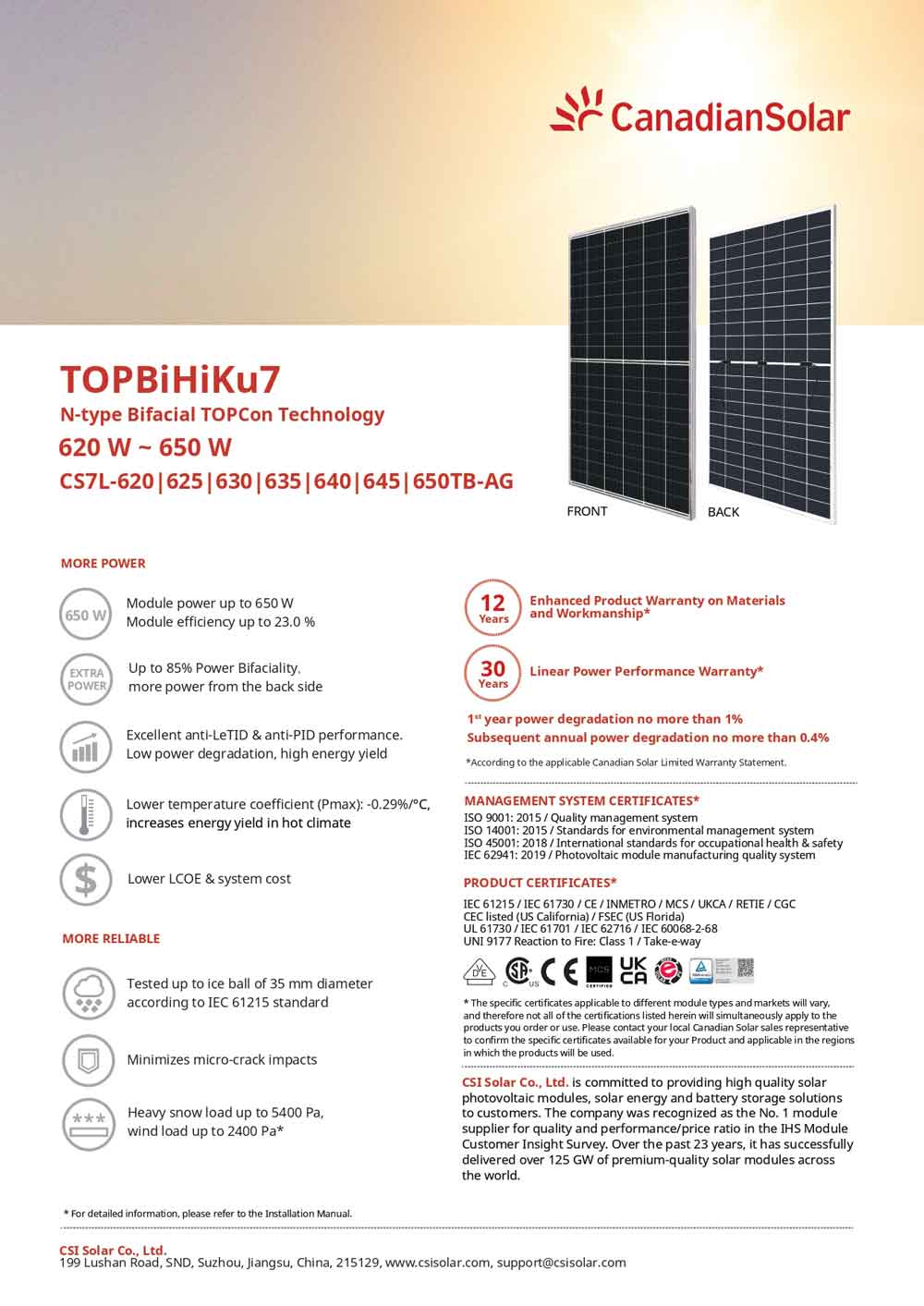 Canadian Solar 620W 2 Mặt Kính. Liên hệ với TC Energy để được tư vấn chi tiết và báo giá tốt nhất hôm nay!